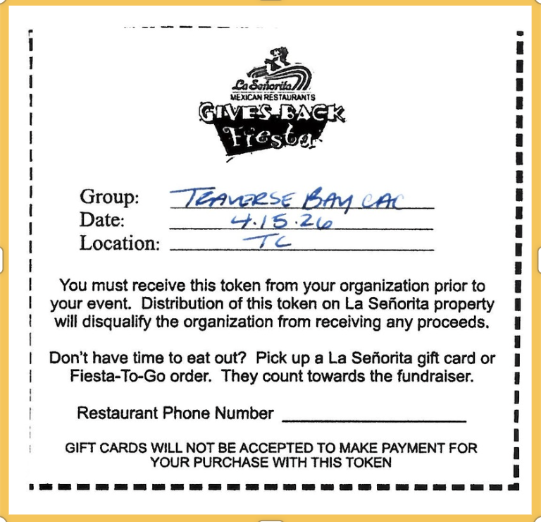 Dine in or take out at La Senorita on April 15, 2026, and 20% of your purchase will be donated to TBCAC when you show the token below!